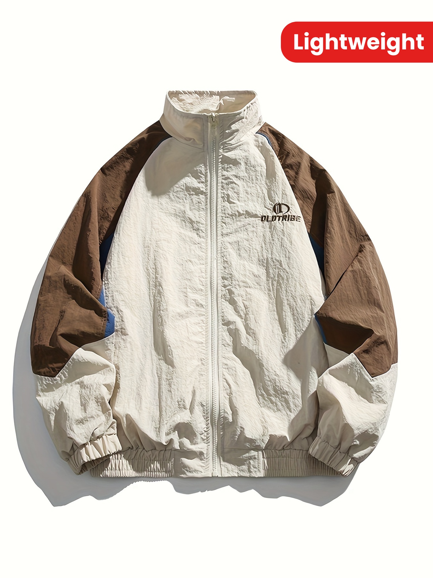 Men's Casual Full-Zip Color Block Jacket, Lightweight Comfy Blouson Jacket For Spring/Fall Outdoor Activity