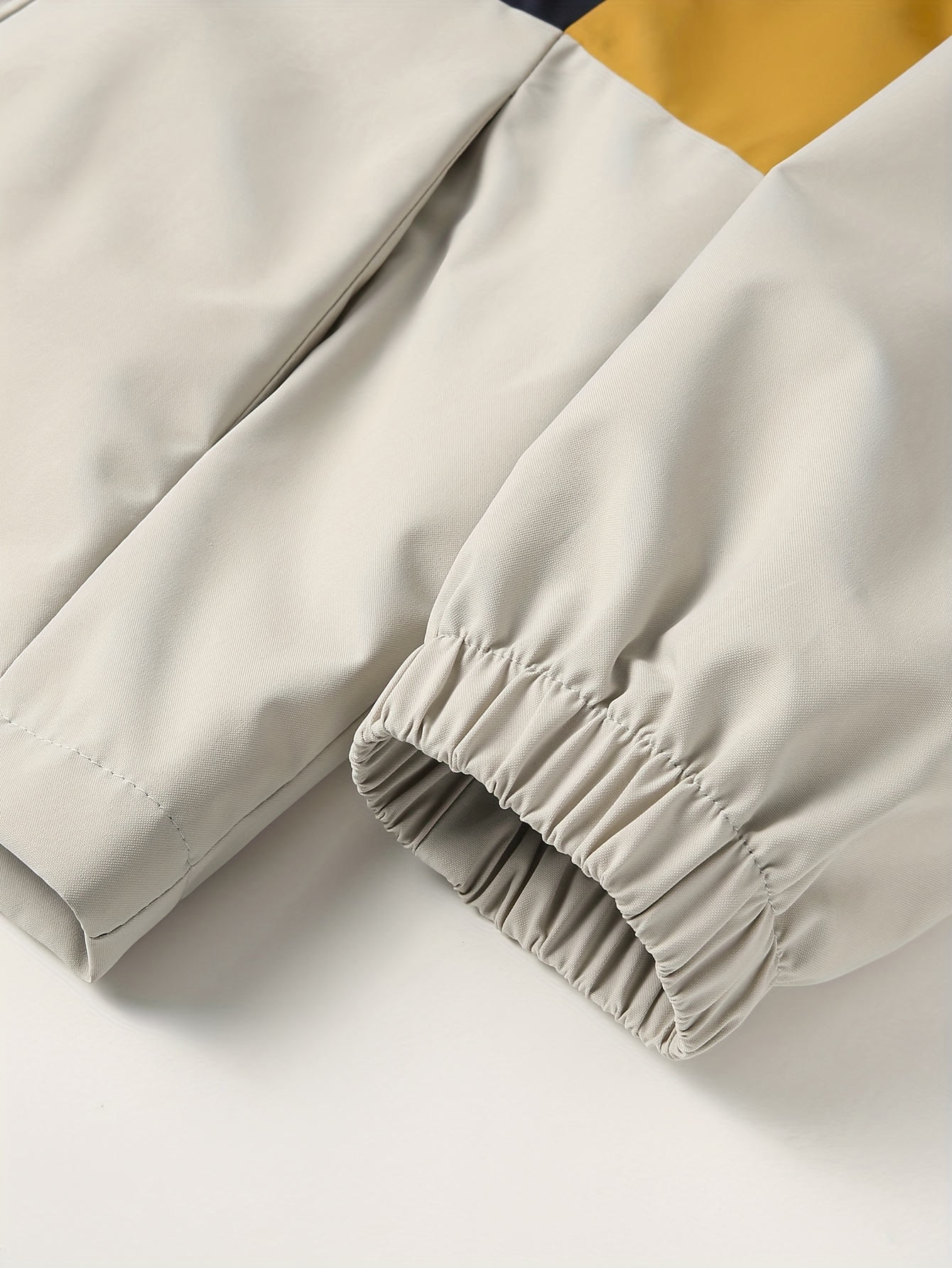 [Casual Hooded Jacket] Durable Polyester Men's Hooded Jacket | Casual Color Block Zip-Up Windbreaker, Machine Washable, Ideal for All Seasons, Windbreaker Jacket, P5