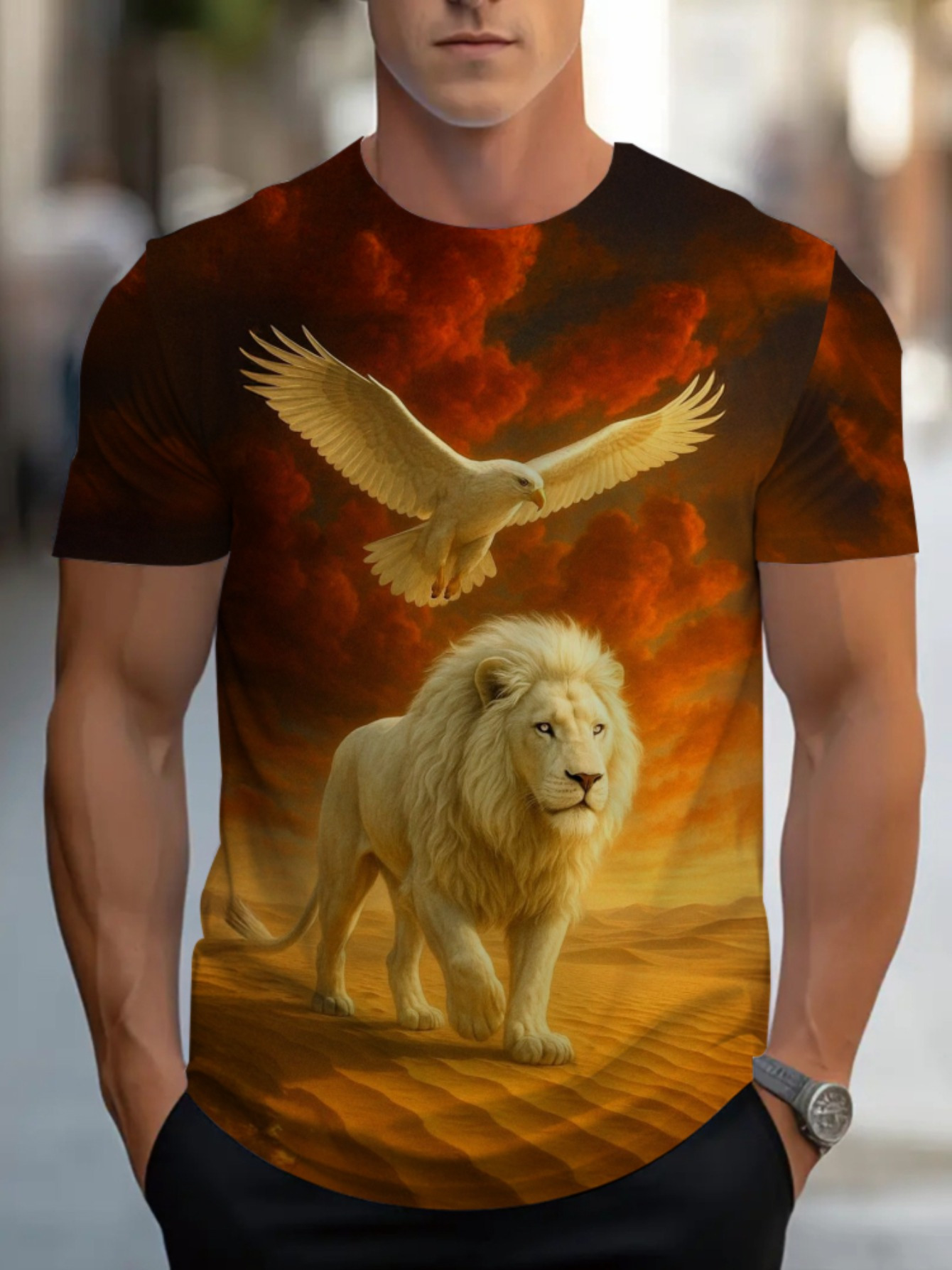 Men'S Lion and Eagle Graphic T-Shirt - Soft, Lightweight, Durable Fabric, Reddish Brown, Casual & Comfortable Fit for All Seasons, Ideal for Casual Attire and Outdoor Activities, Everyday Tshirt | Bold Print Shirt | Lightweight Shirt