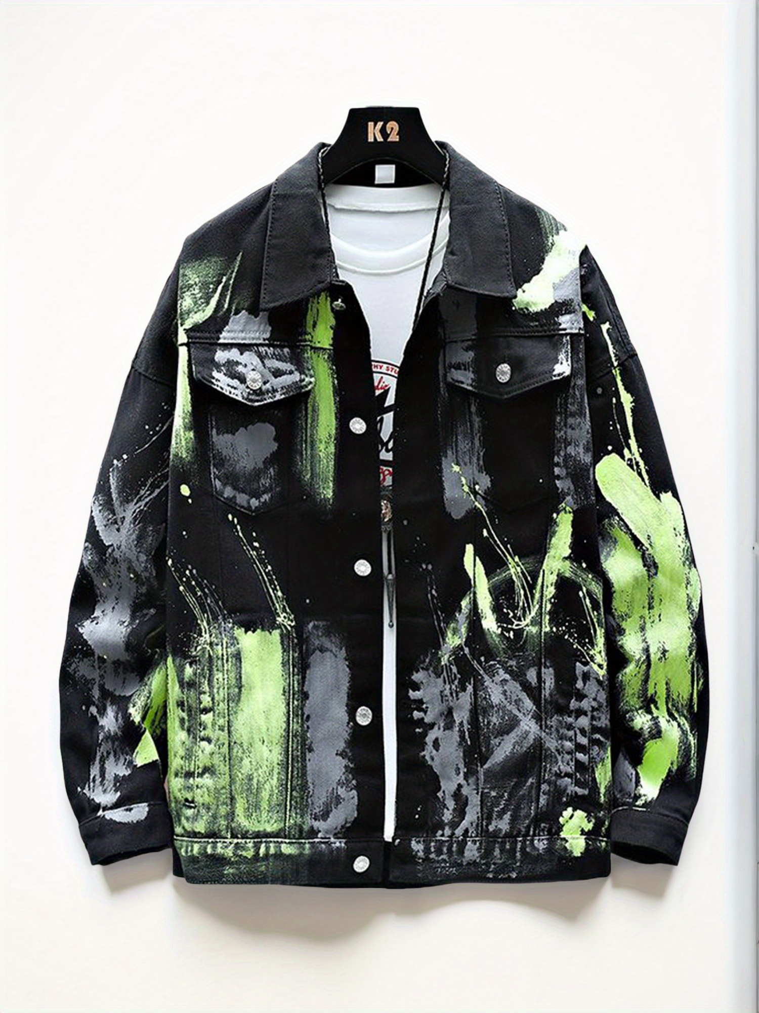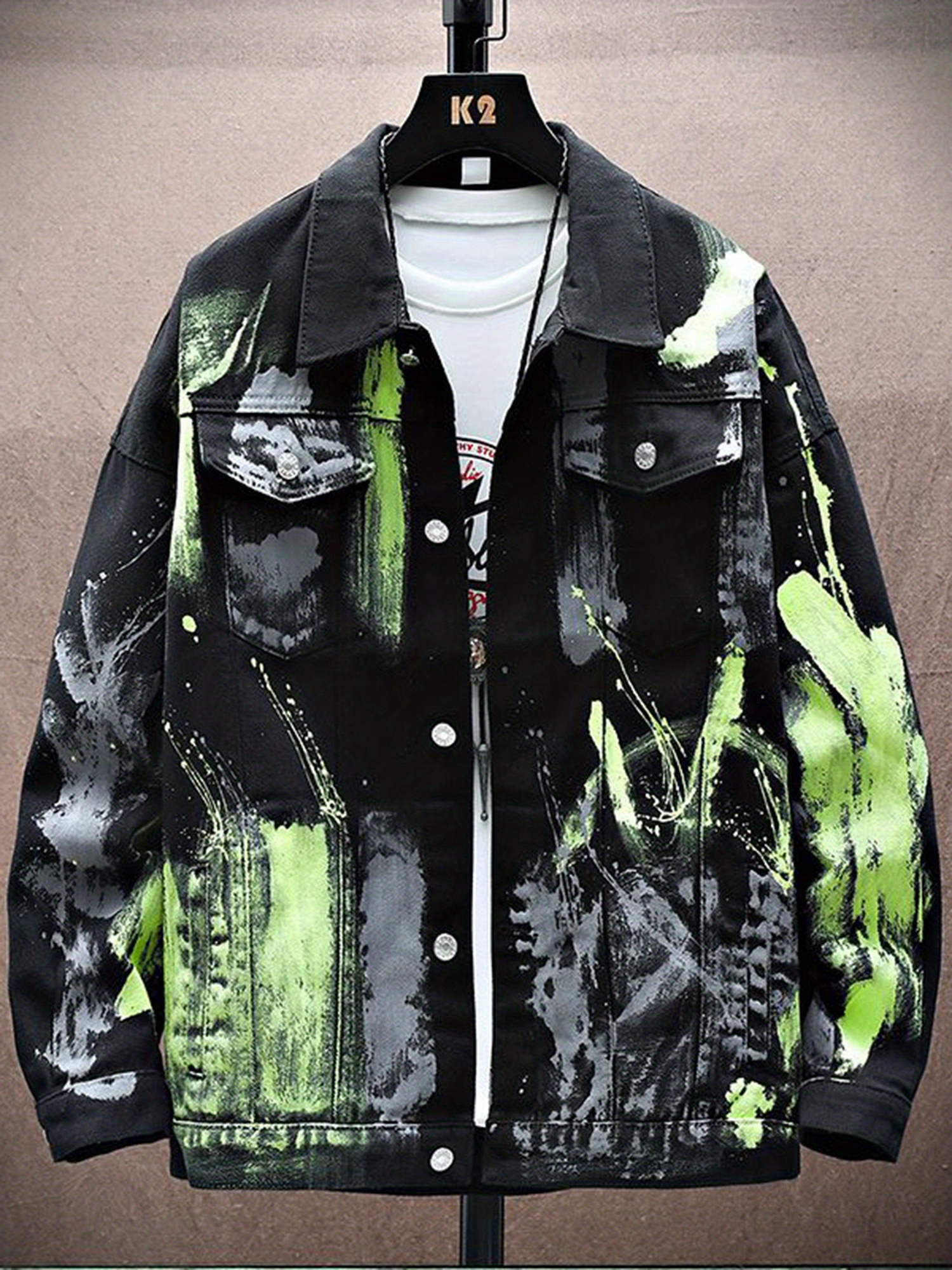 Men'S Printed with Random Print And Graffiti Design, Fashionable And Versatile, Made of High-Quality Fabric, Soft in Texture, Loose And Comfortable Coat.