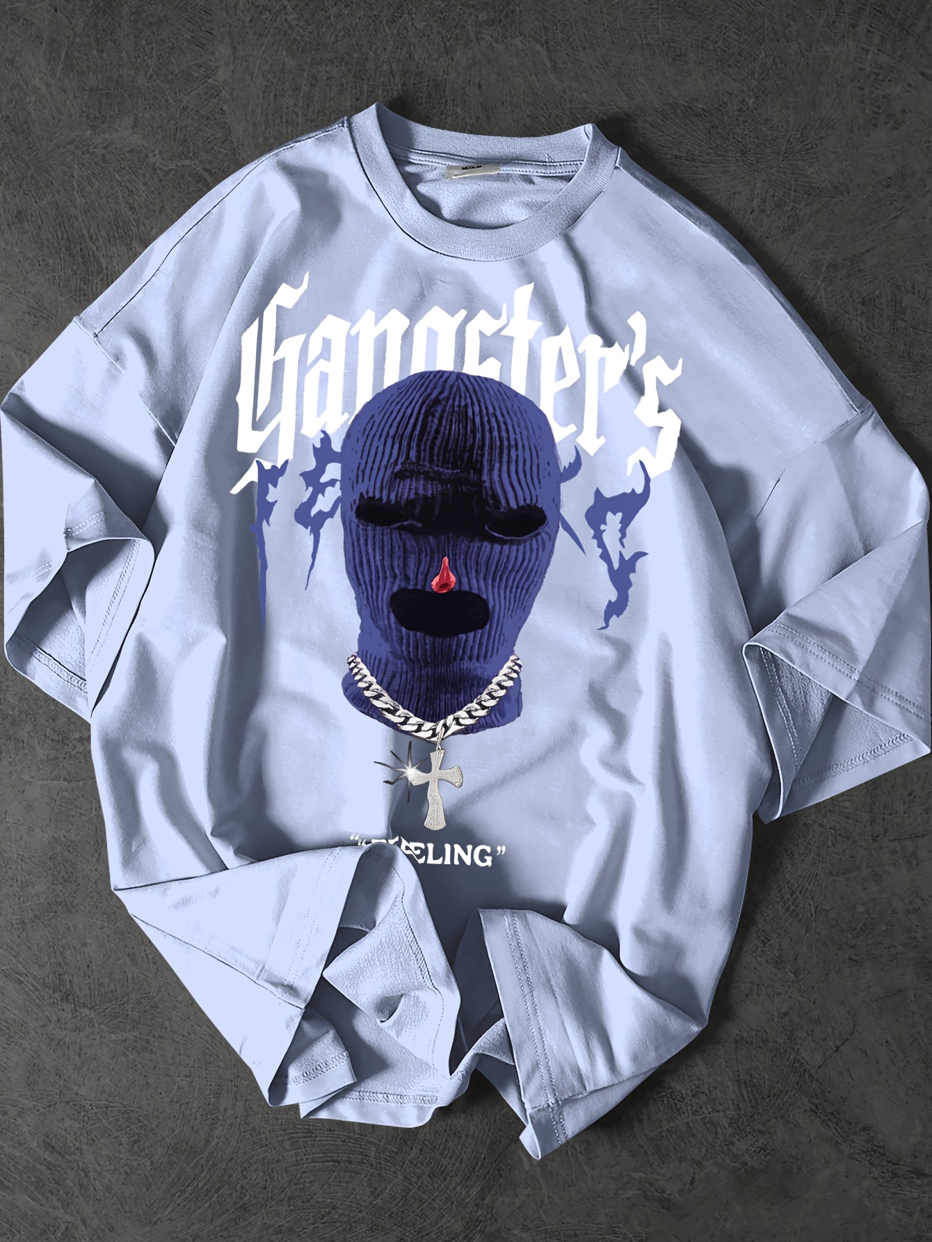 Men's Summer New Arrival "Gangster" Character Print Loose Fit Short-Sleeve T-Shirt, Versatile Casual Style for Outdoor Sports, Running, Shopping, and Themed Parties, Soft Polyester, Machine Washable