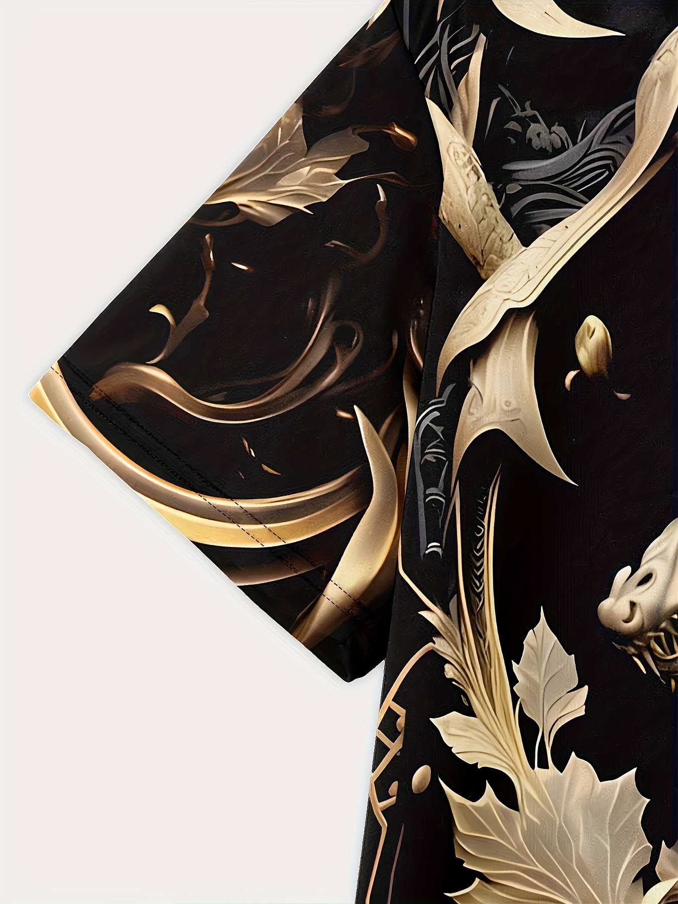 Summer Fashion Golden Dragon Print Short-Sleeved Round Neck T-Shirt - Men's Casual All-Match Outdoor Top