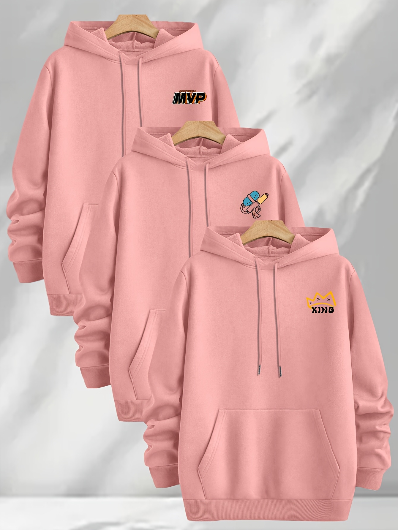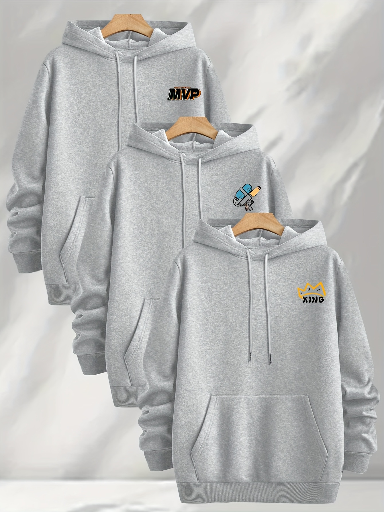 [Three-Piece Hoodie Set] Three-Piece Set Of Fashionable Element Print Hoodies, Men's Casual Pullover Sweatshirt With Long Sleeves, Slightly Stretchy Knit Polyester Fabric, Regular Fit Men's Hoodie