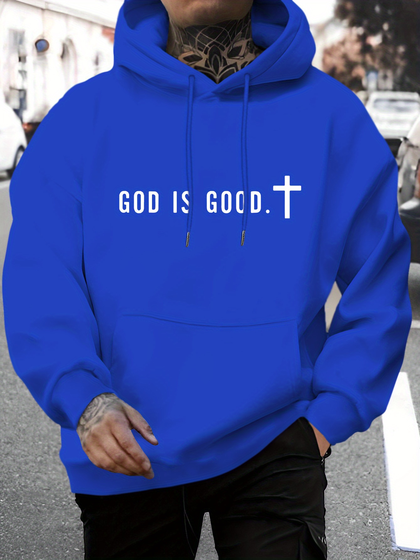 [Men's Cross Print Hooded Sweatshirt] Black Men's "GOD IS GOOD" & Cross Print Hooded Sweatshirt | Regular Fit, Casual Long Sleeve Pullover, Autumn Winter Warmth, Comfortable Versatile Casual Attire