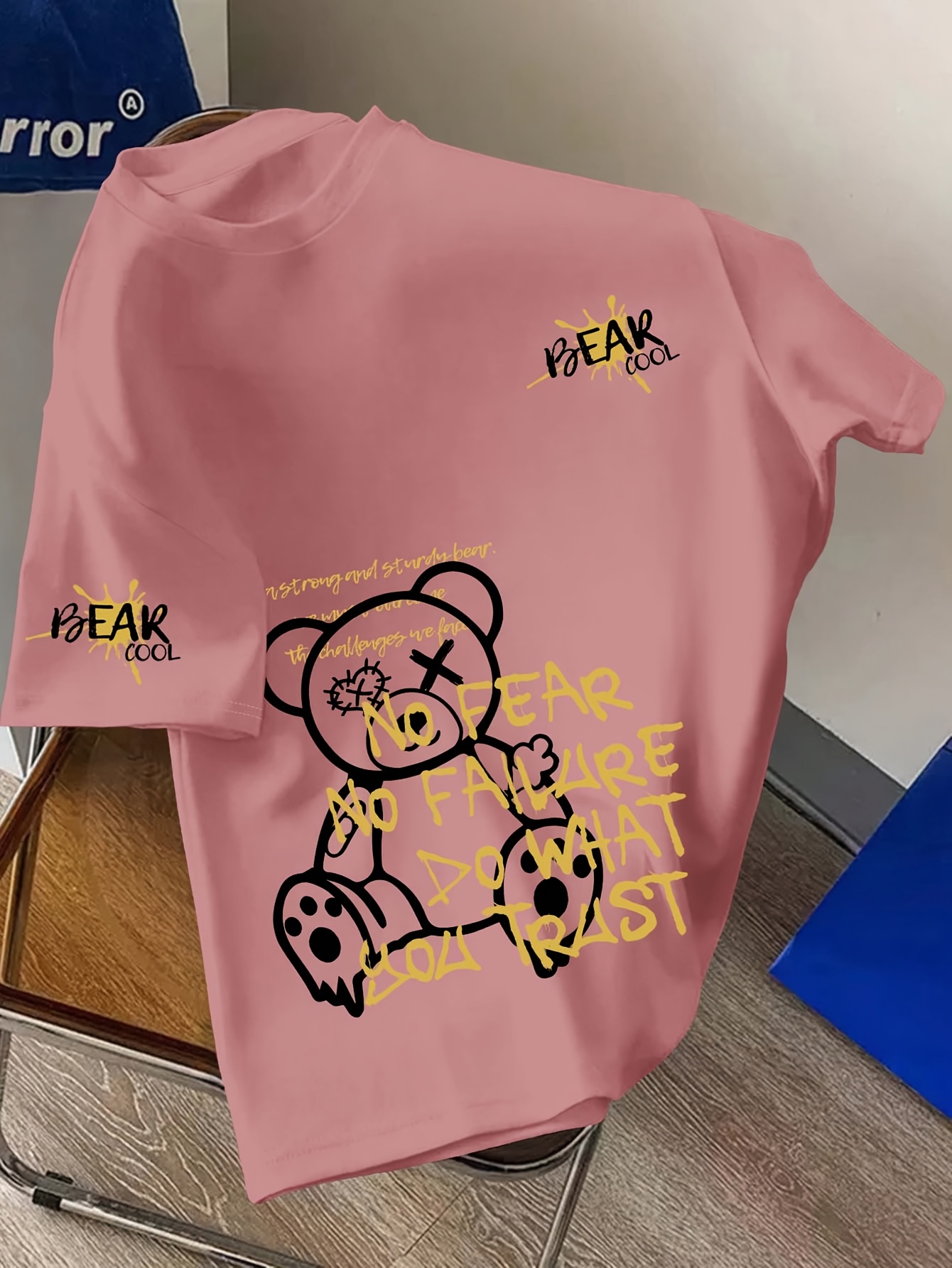 Men's Graphic T-Shirt - Relaxed Fit Streetwear Tee with Fearless Bear Design, White Crew Neck Shirt for Casual Summer Outfits & Edgy Fashion Statements, Machine Washable Top, Distressed Lettering, Durable Print