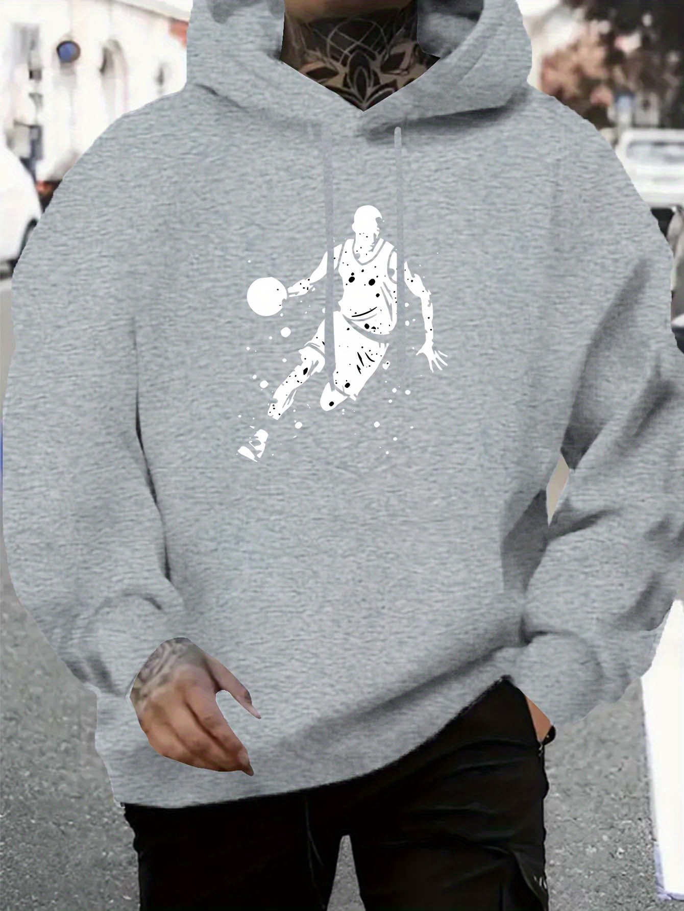Men's Hooded Sweatshirt - All-Season Lightweight Pullover Hoodie, Light Grey/White Basketball Graphic, Regular Fit Casual Streetwear for Sports & Casual Attire, Basketball Hoodie, Durable Fabric