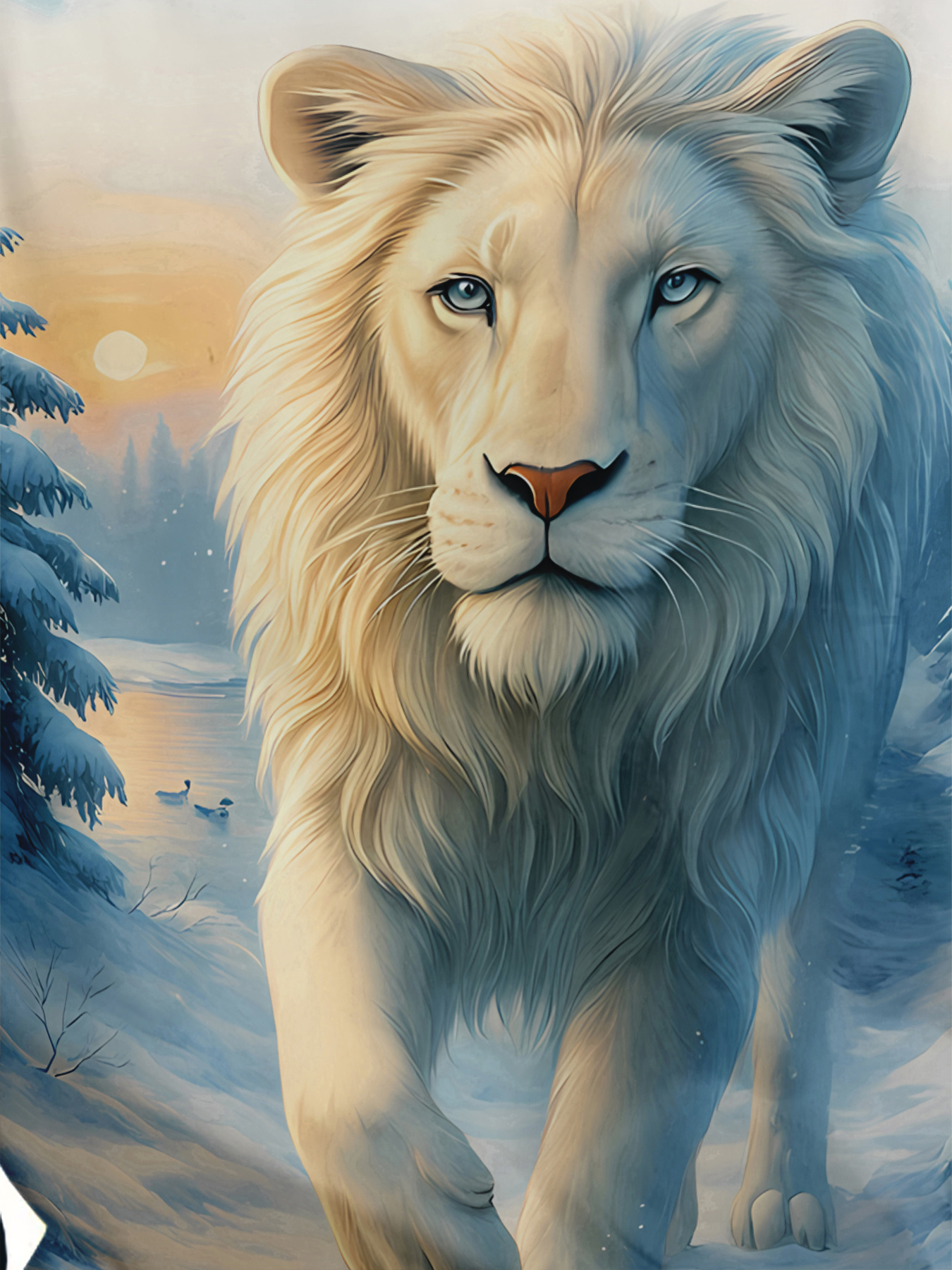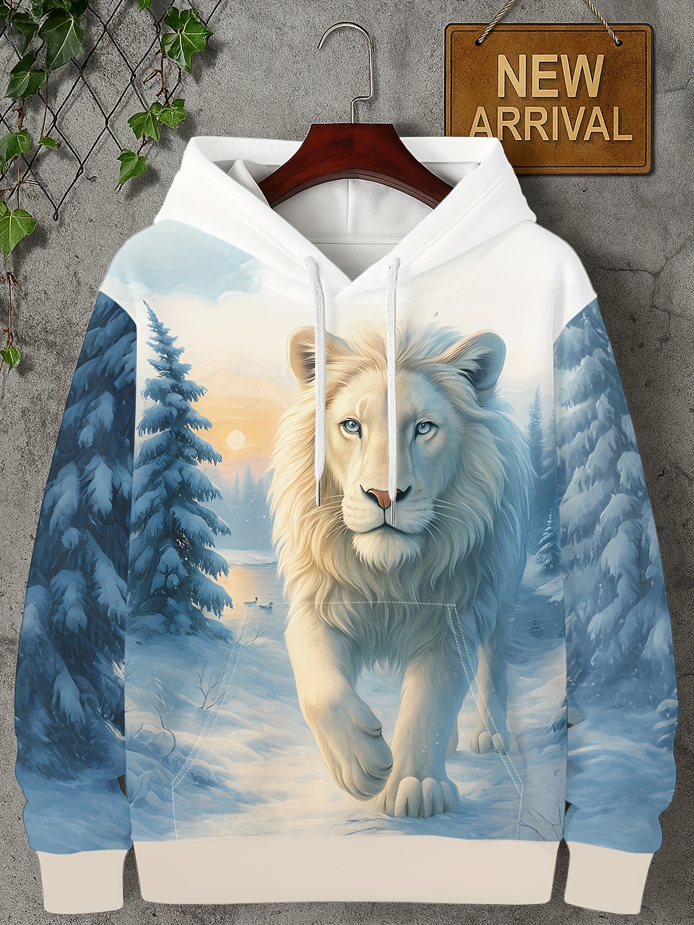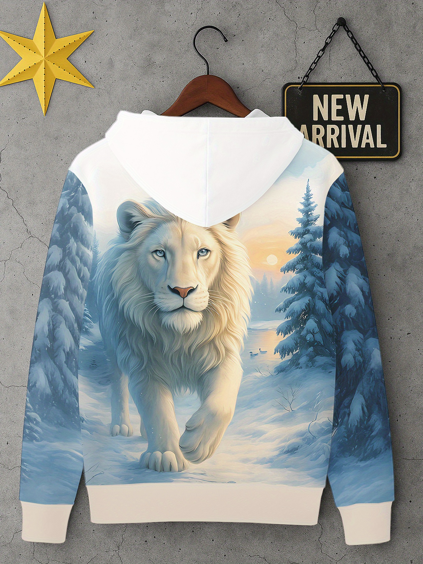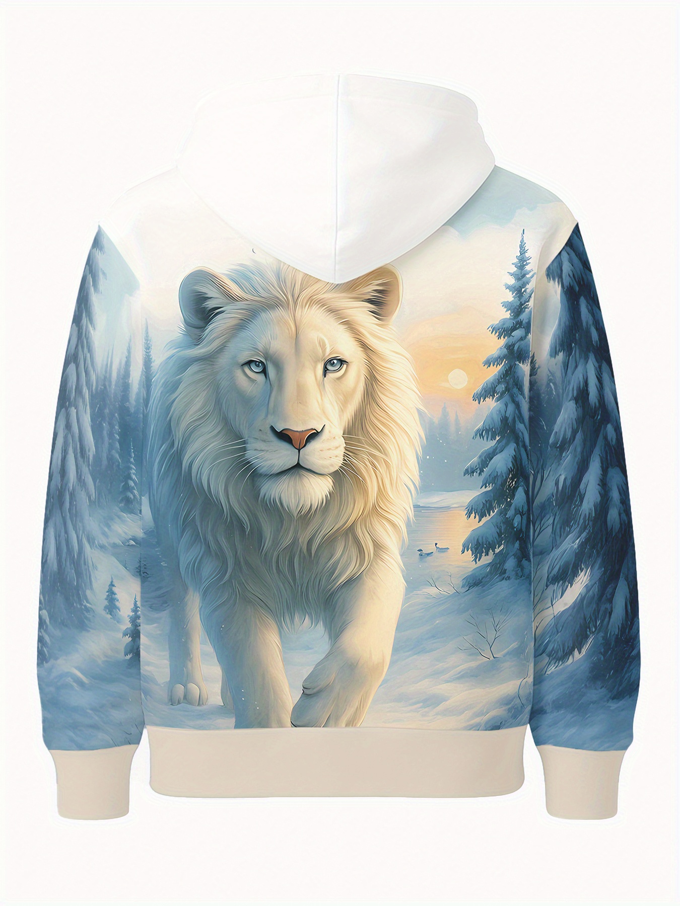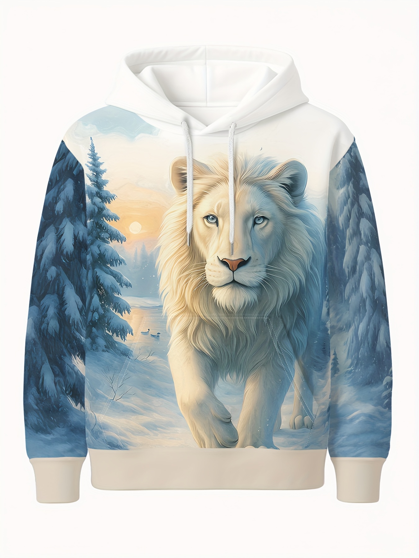 [3D White Lion Hoodie] 3D Snow Forest White Lion Hoodie for Men | Animal Print Pullover with Drawstring Hood and Pocket, Long Sleeves - Casual Autumn Winter Streetwear, Nature Wildlife Sweatshirt