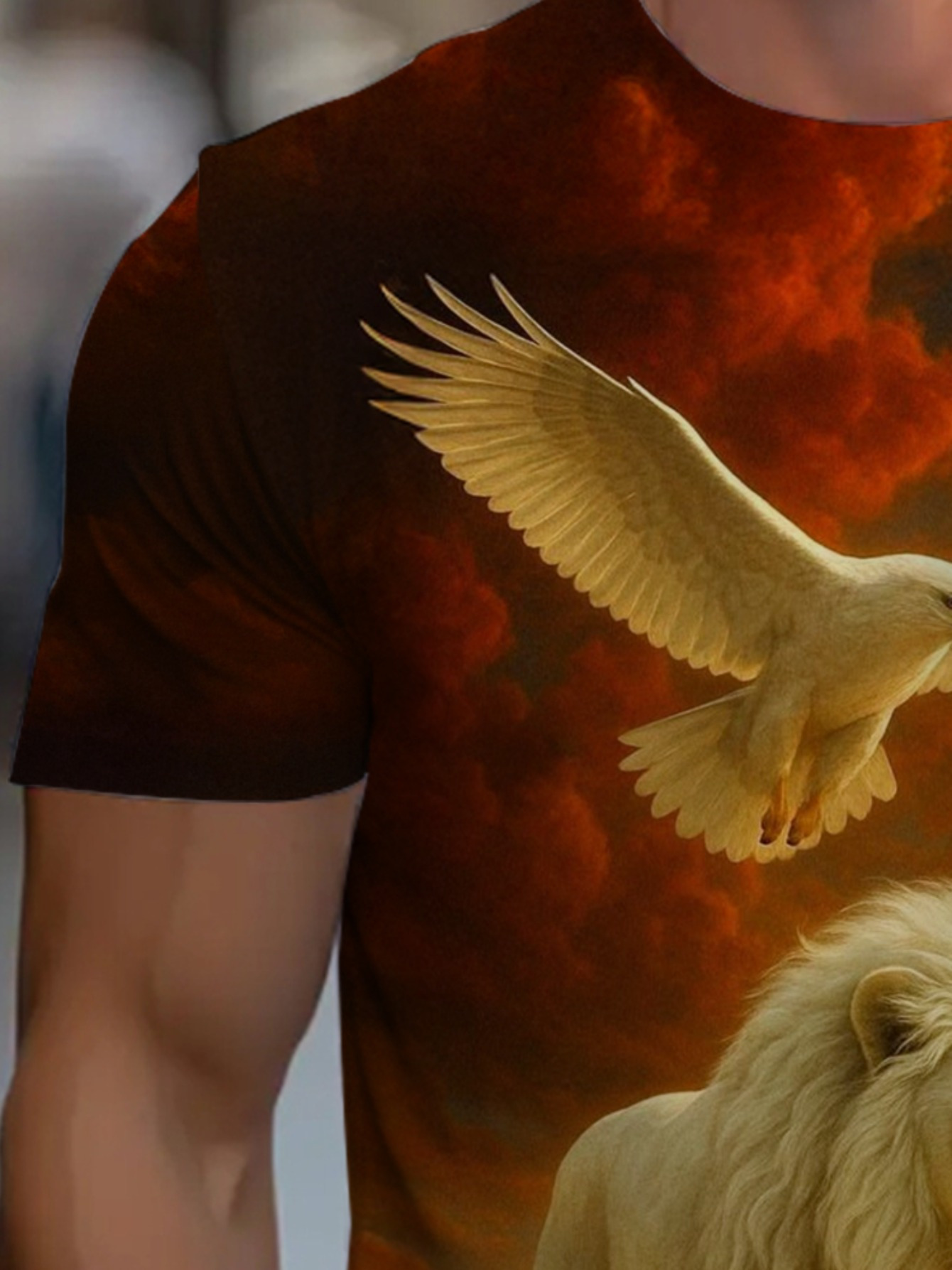 Men'S Lion and Eagle Graphic T-Shirt - Soft, Lightweight, Durable Fabric, Reddish Brown, Casual & Comfortable Fit for All Seasons, Ideal for Casual Attire and Outdoor Activities, Everyday Tshirt | Bold Print Shirt | Lightweight Shirt