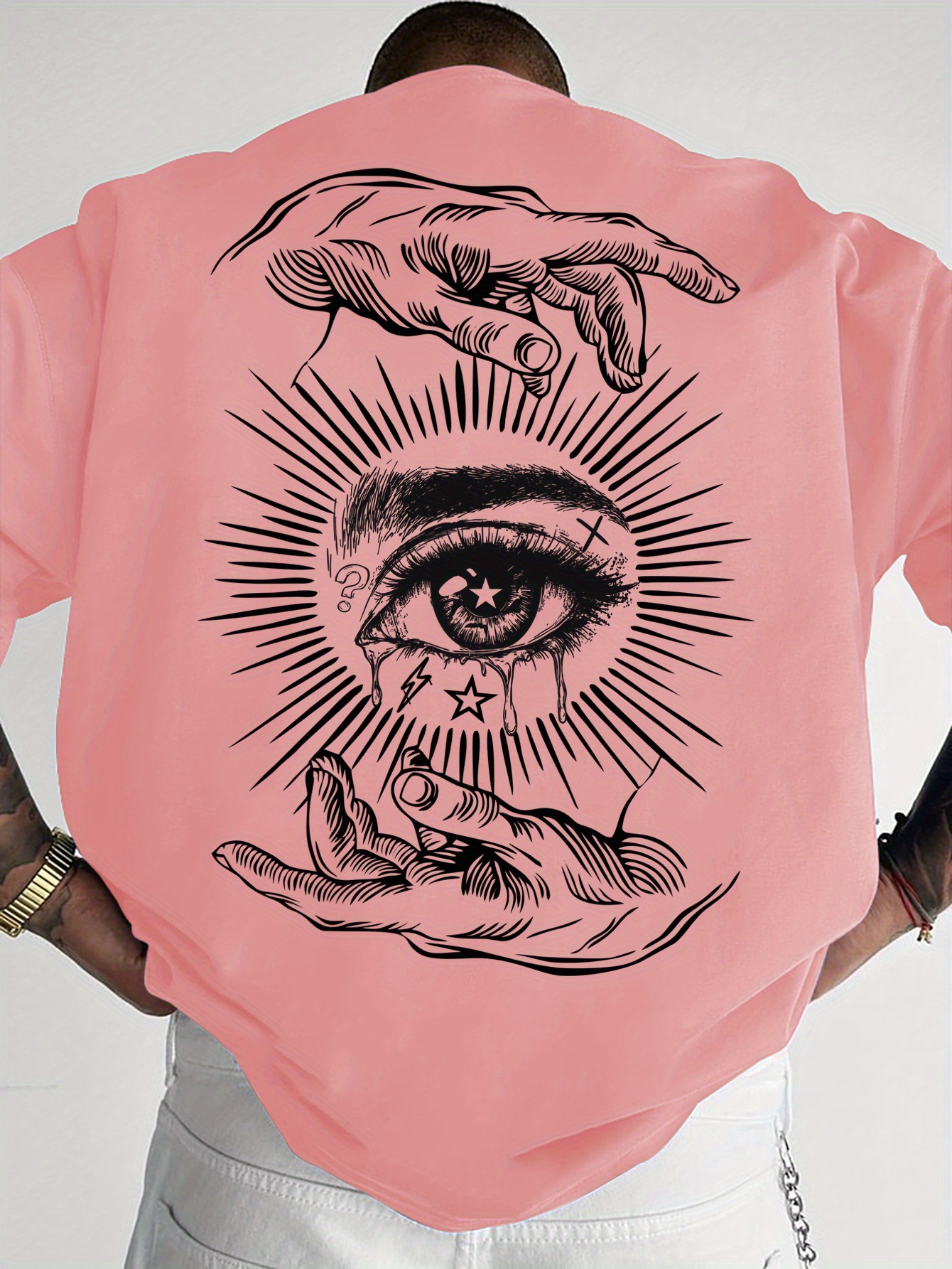 Men'S Summer Casual T-Shirt with Dark Art Eye & Hand Print, Lightweight Polyester, Quick-Dry & Machine Washable, Loose Fit for Outdoor Sports & Social Gatherings, Streetwear Style, Round Neck, Breathable Fabric