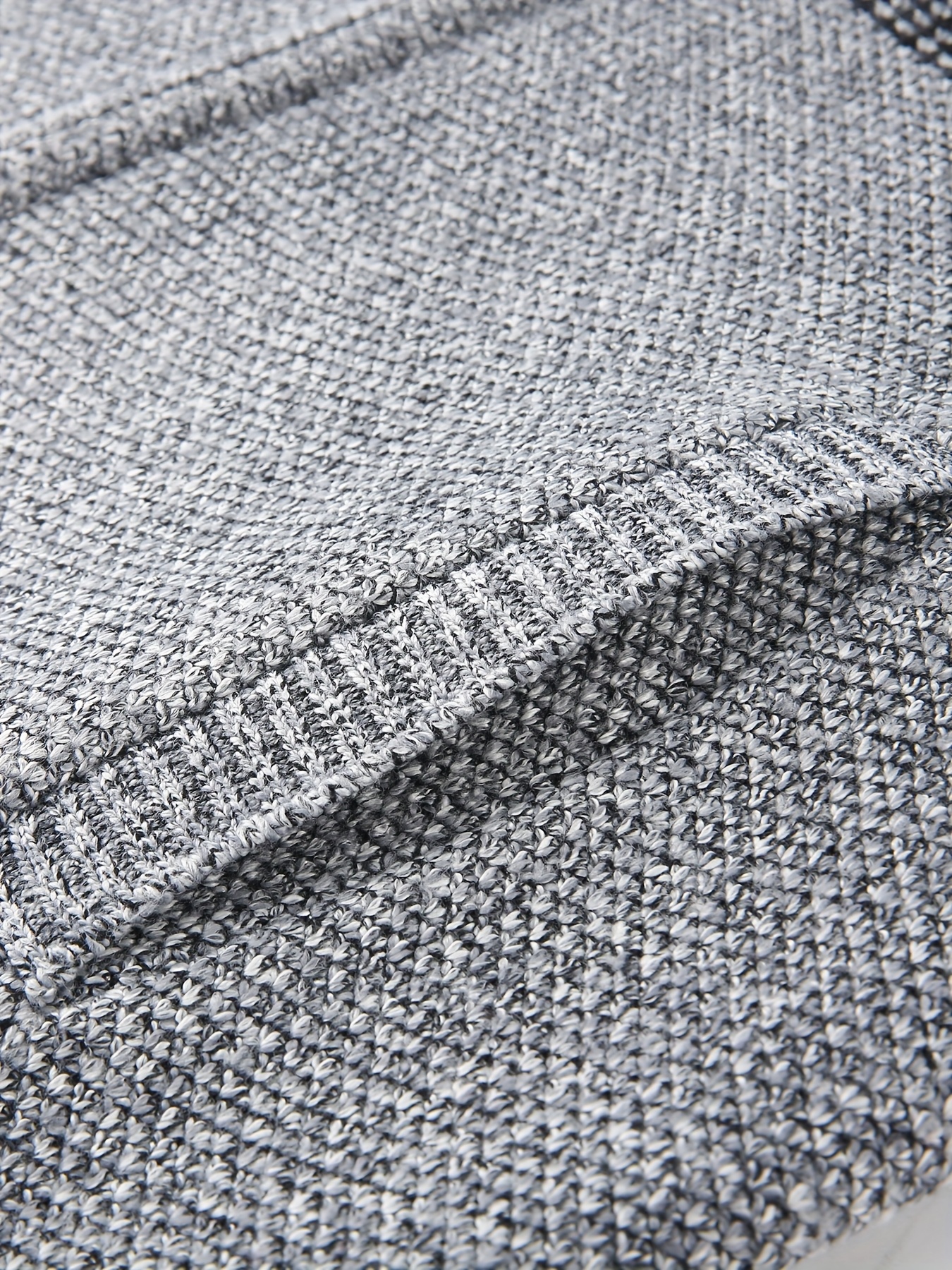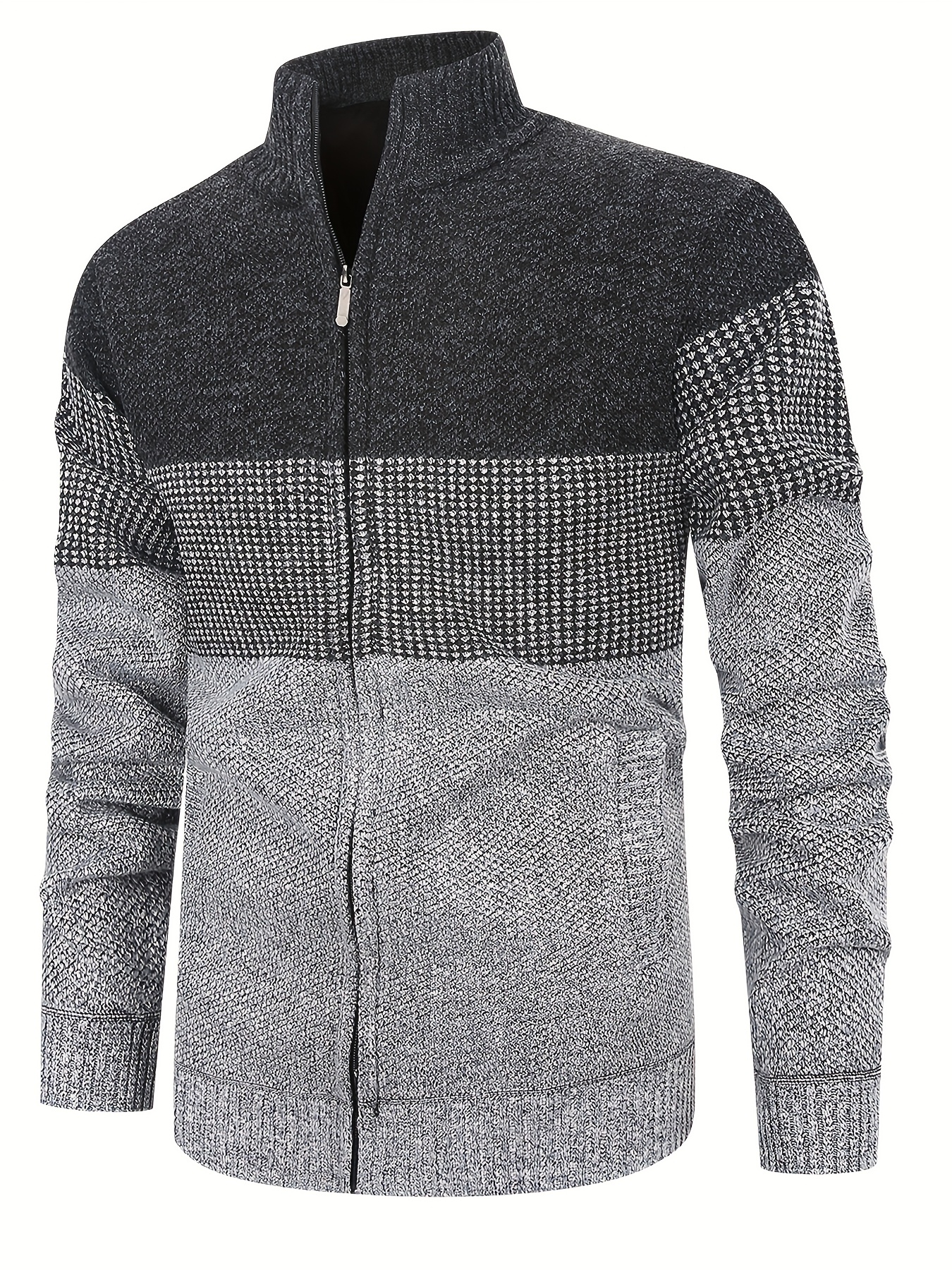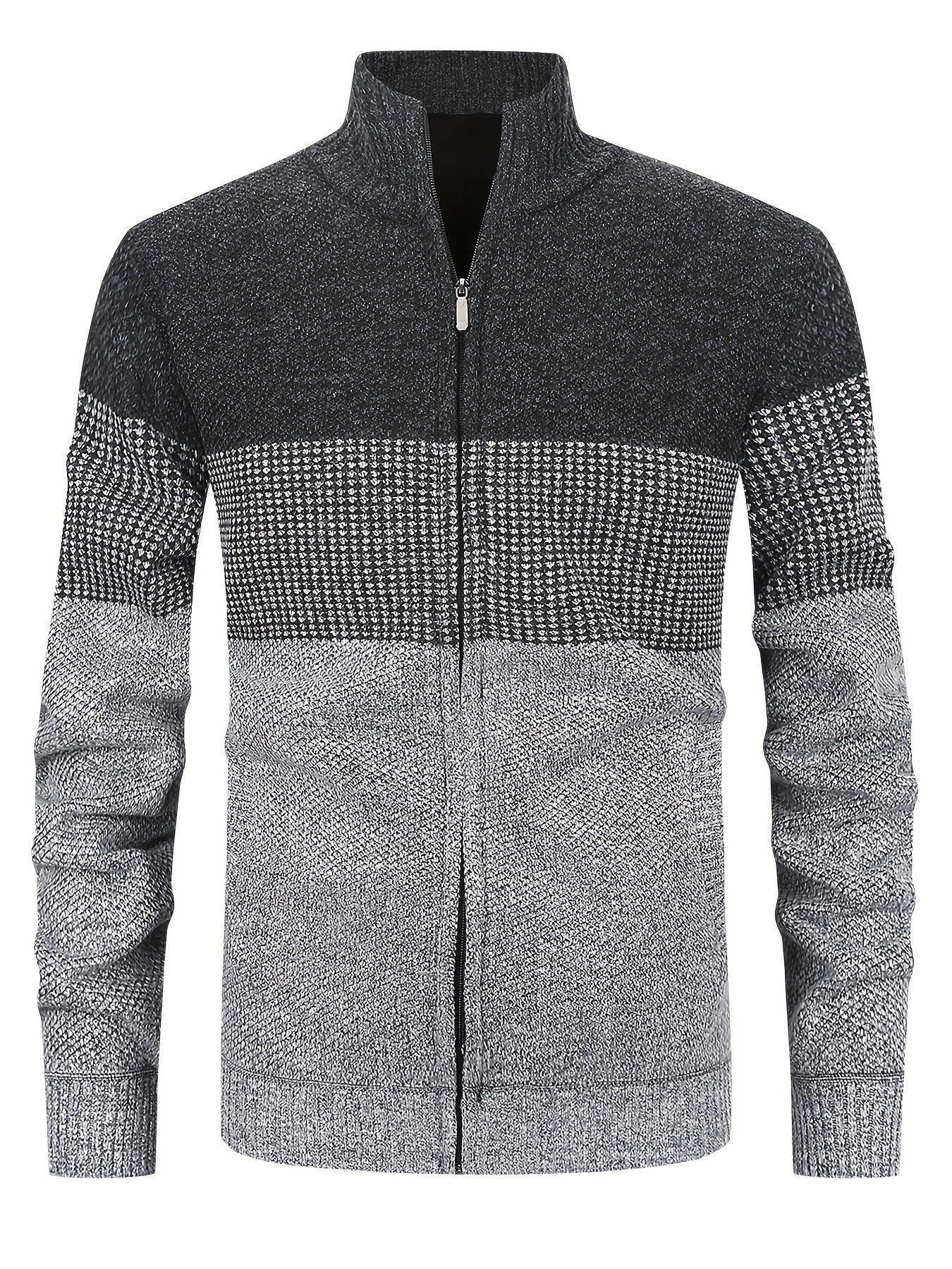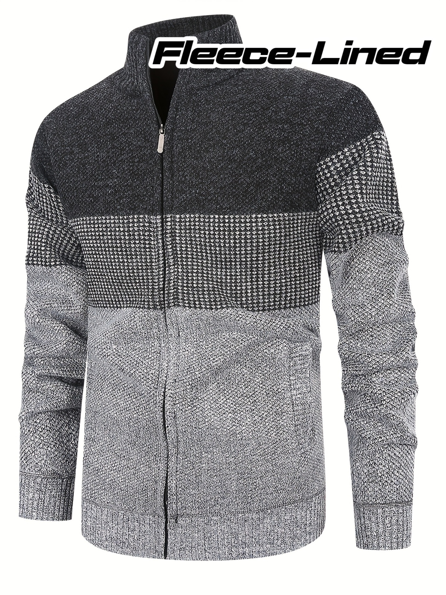 Men's Knitted High Collar Zip-Up Striped Casual Fleece-Lined Thick Sweater