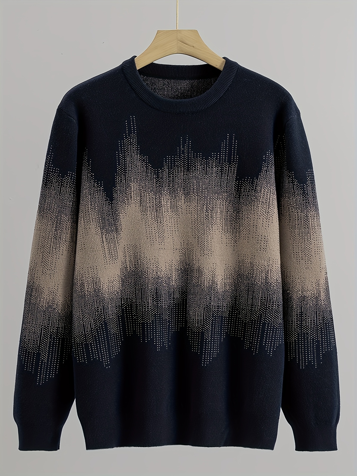 Men's Casual Gradient Color-Block Knit Sweater - Soft Stretch Round Neck Pullover, Machine Washable Slim Fit for Autumn Winter, Cute Sweaters, Durable Winter Wear, Medium Elasticity Fabric