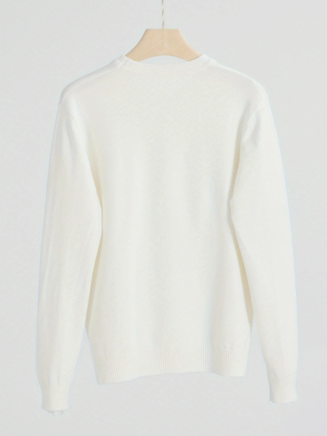 Men'S Casual V-Neck Sweater - Soft Knit, Long Sleeve, Solid White, Perfect for Fall & Winter, Versatile for Outdoor & Indoor Wear, Winter Clothing | Vneck Sweater | Knit Construction