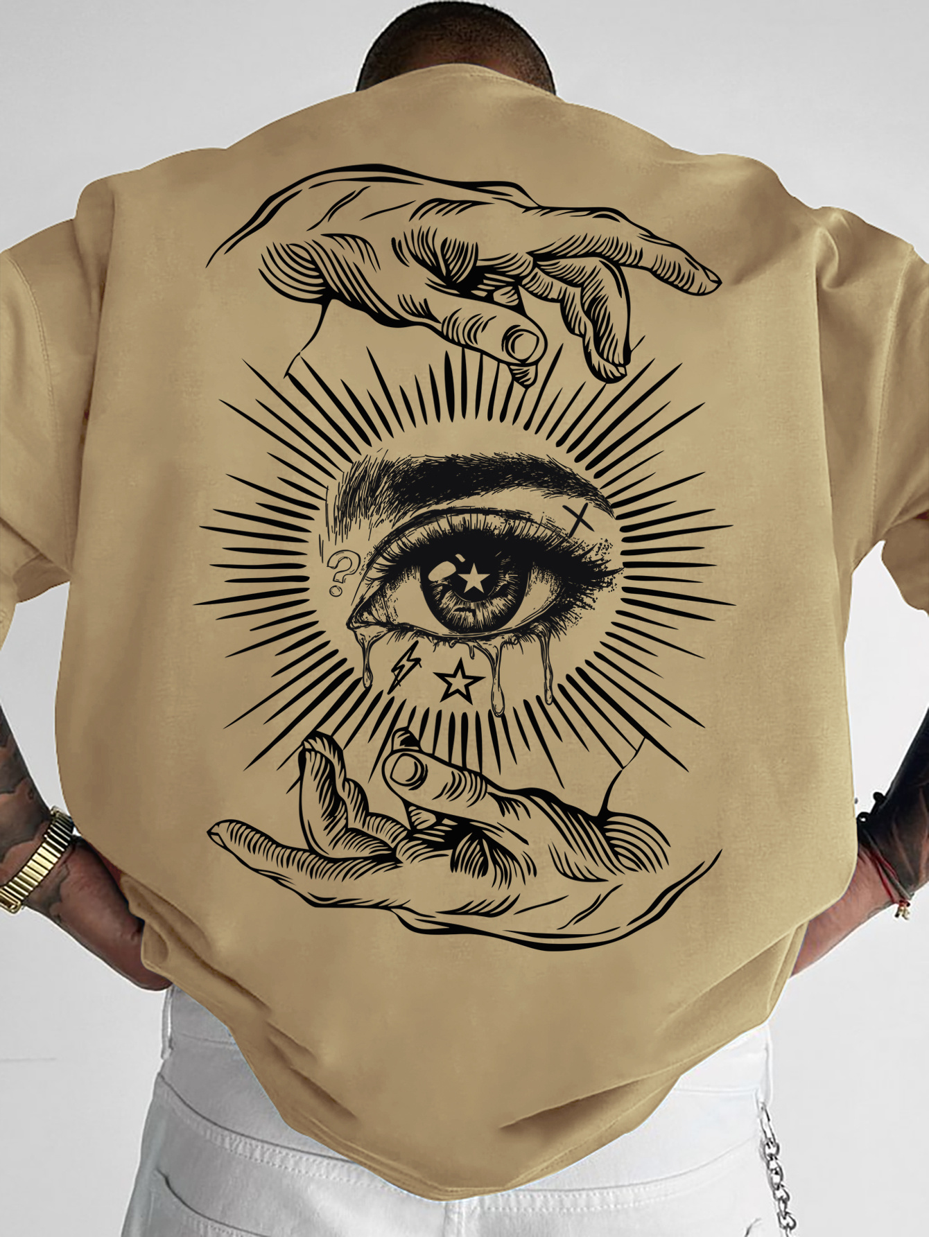 Men'S Summer Casual T-Shirt with Dark Art Eye & Hand Print, Lightweight Polyester, Quick-Dry & Machine Washable, Loose Fit for Outdoor Sports & Social Gatherings, Streetwear Style, Round Neck, Breathable Fabric