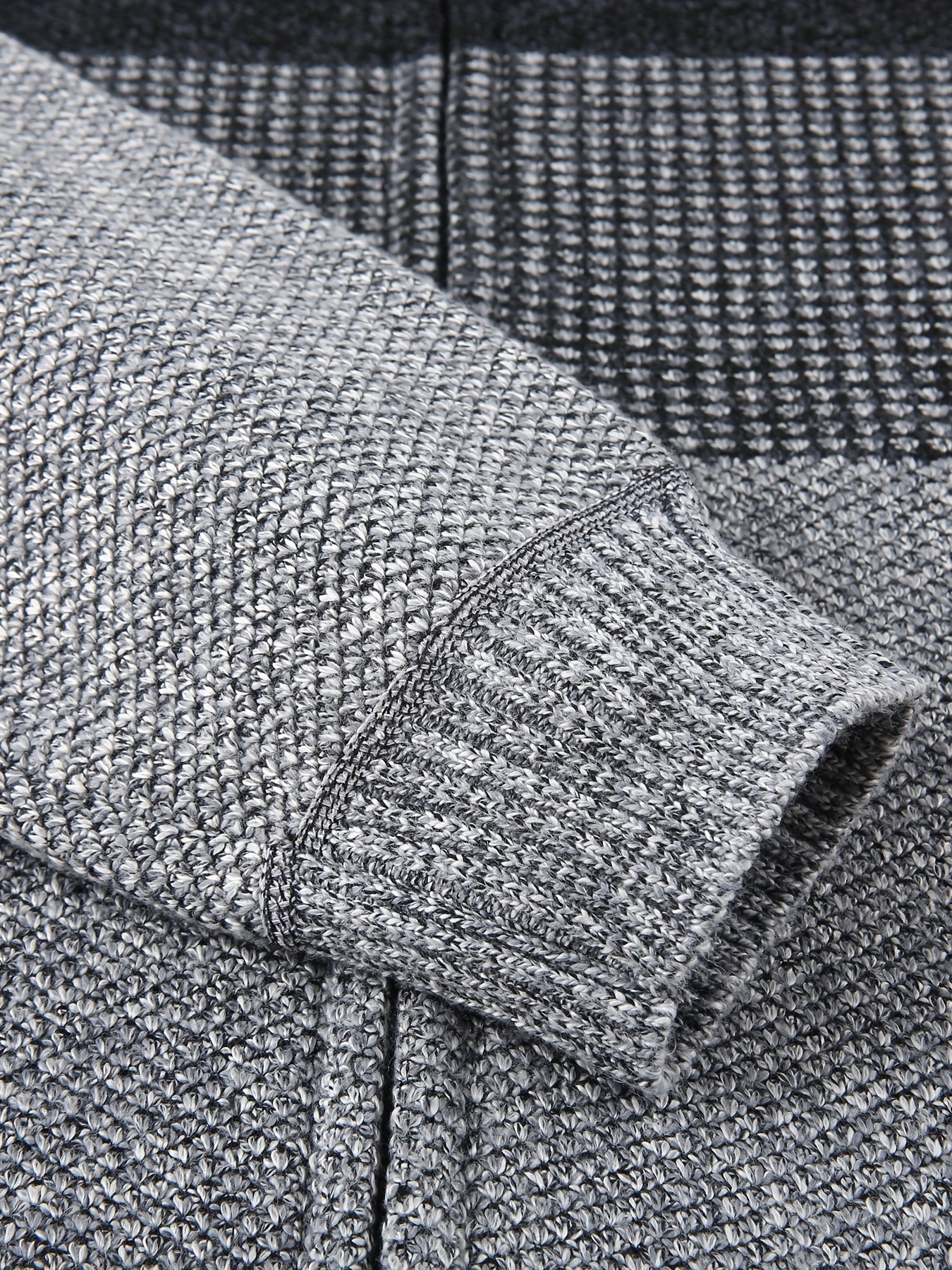 Men's Knitted High Collar Zip-Up Striped Casual Fleece-Lined Thick Sweater
